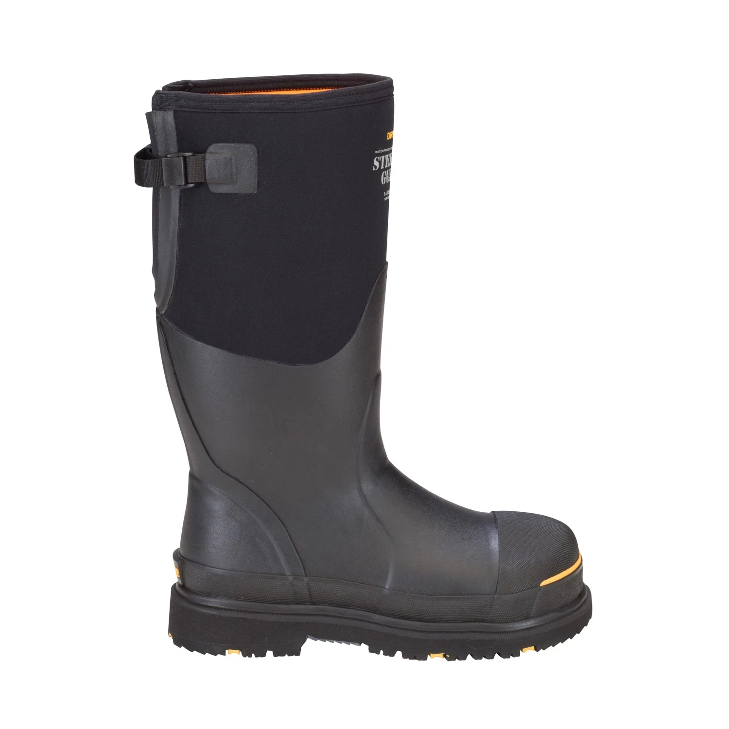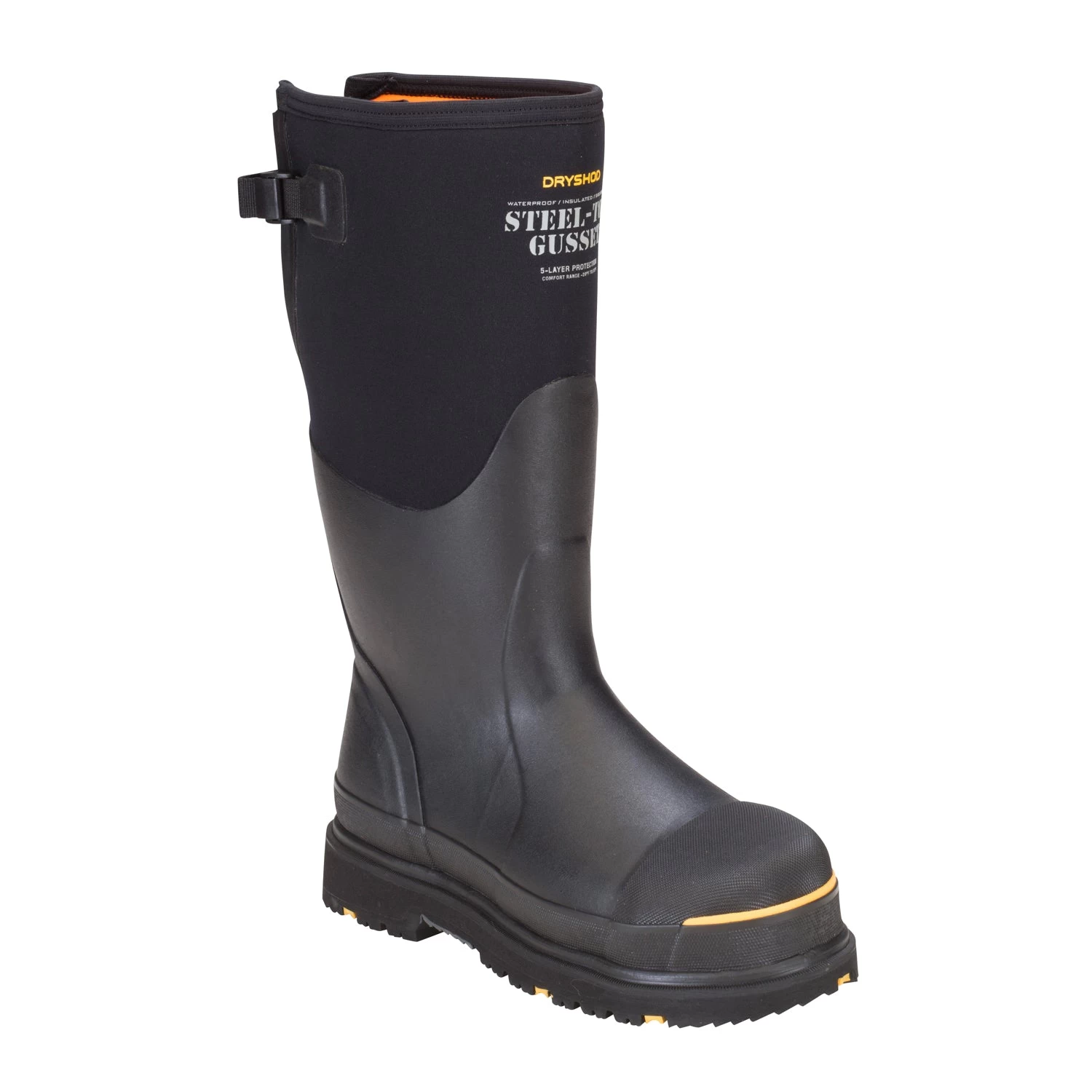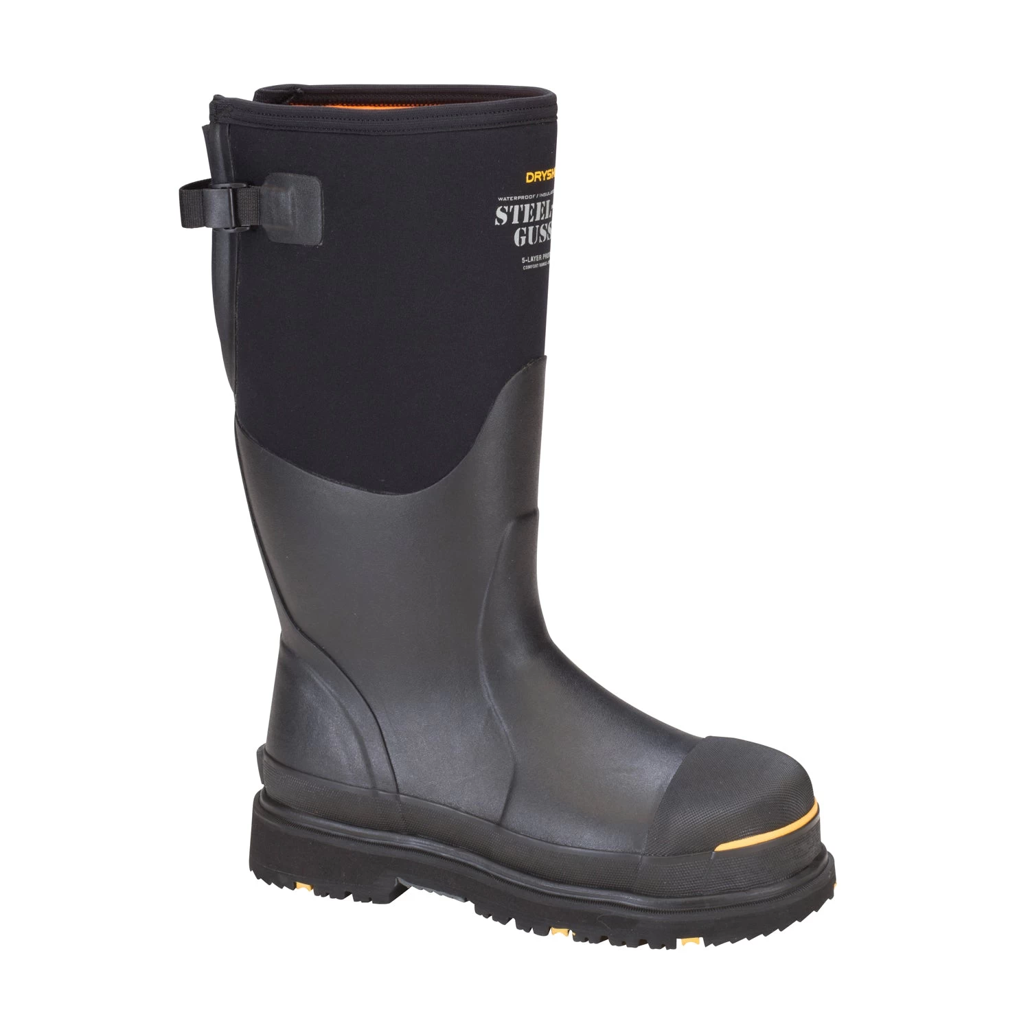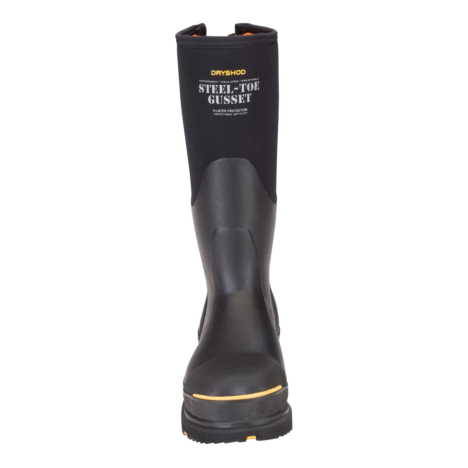 Dryshod Mens Steel Toe Adjustable Gusset Black/Yellow Rubber Work Boots