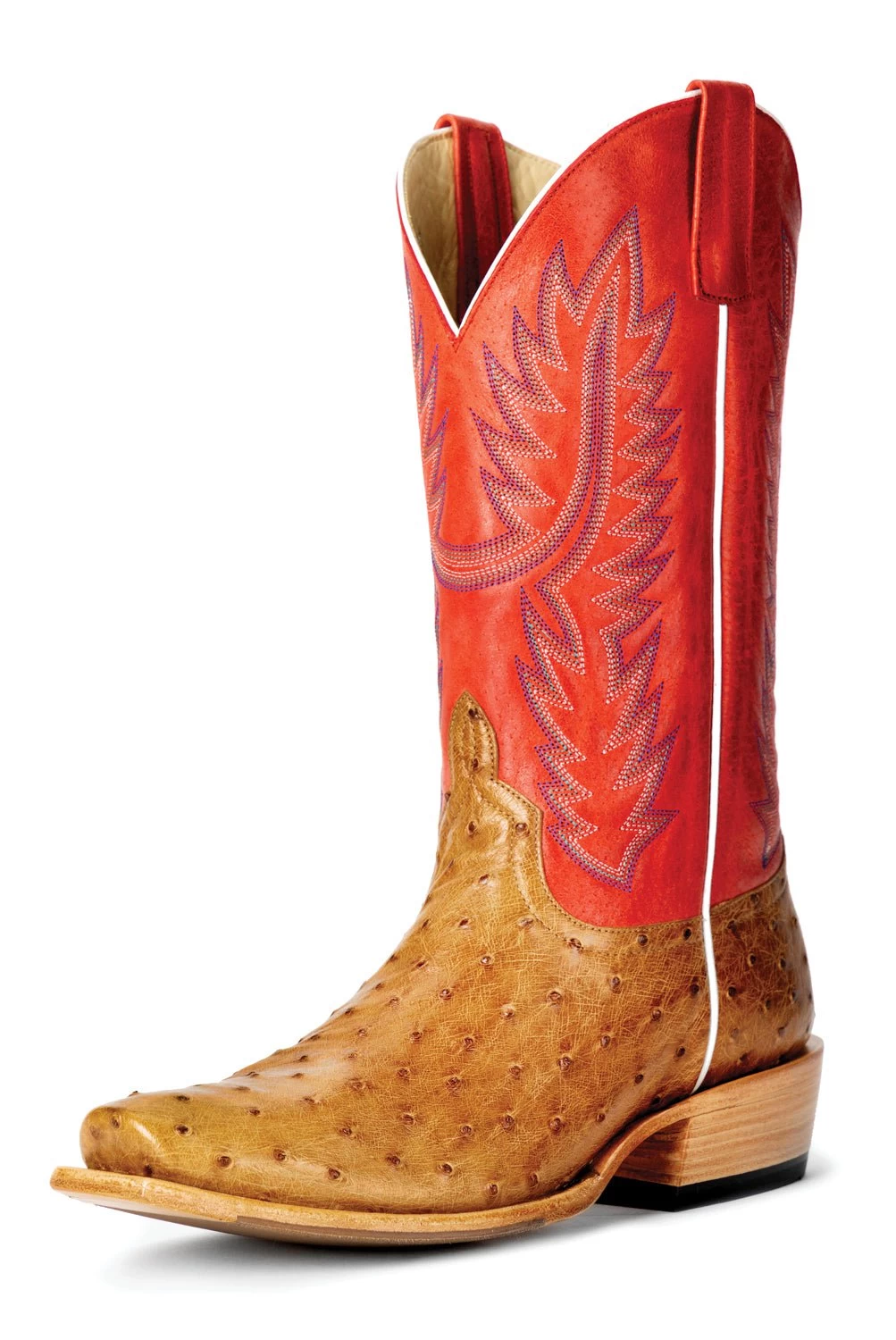 Horse Power brings premium materials at an affordable price for the weekend and casual cowboy. These mens western boots feature antique saddle full quill ostrich vamp, red sinsation top, and a hybrid sole.