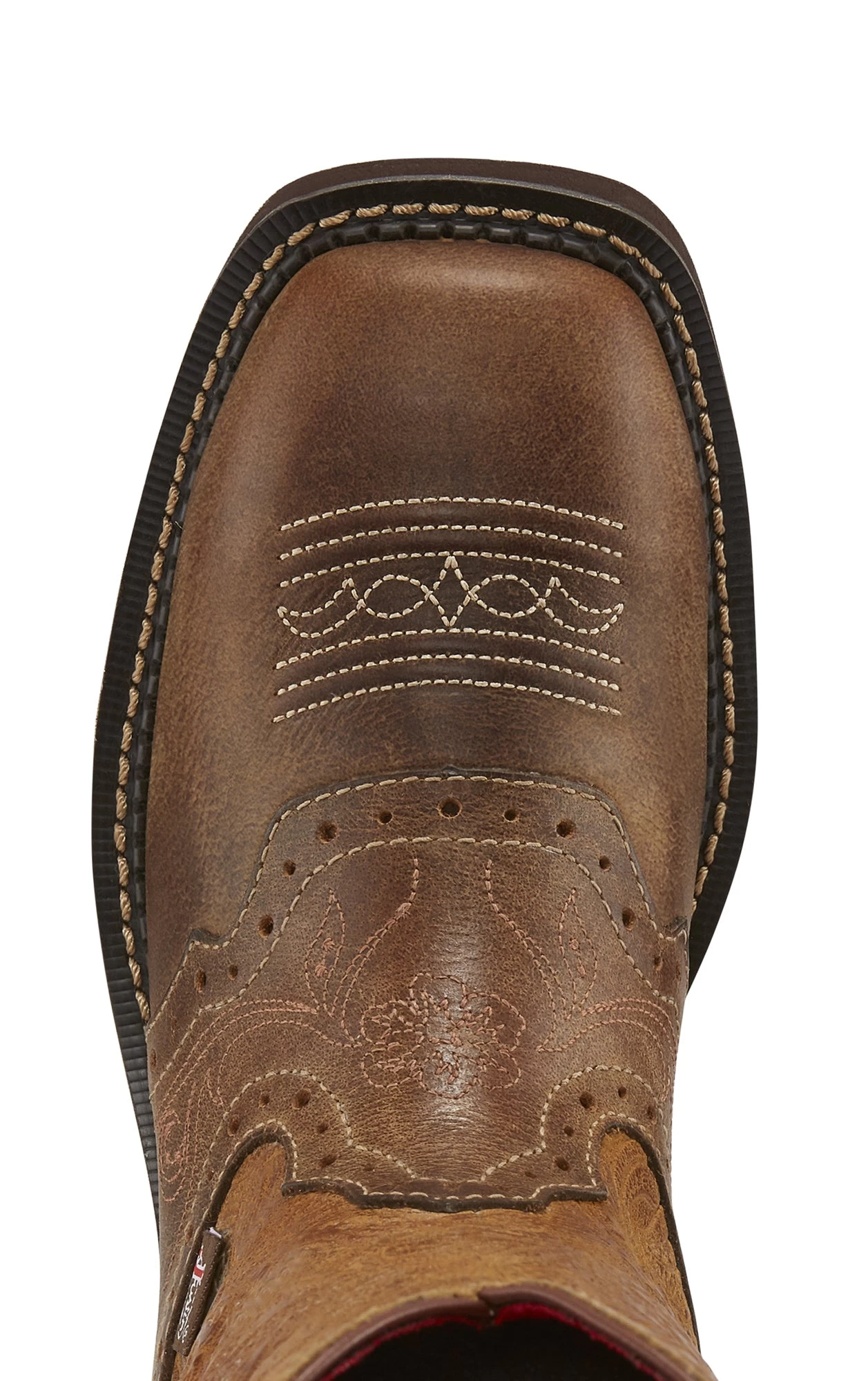 These womens cowboy boots feature a broad square toe, rubber sole, and a floral tooled top. Get ready to work in comfort with these boots!