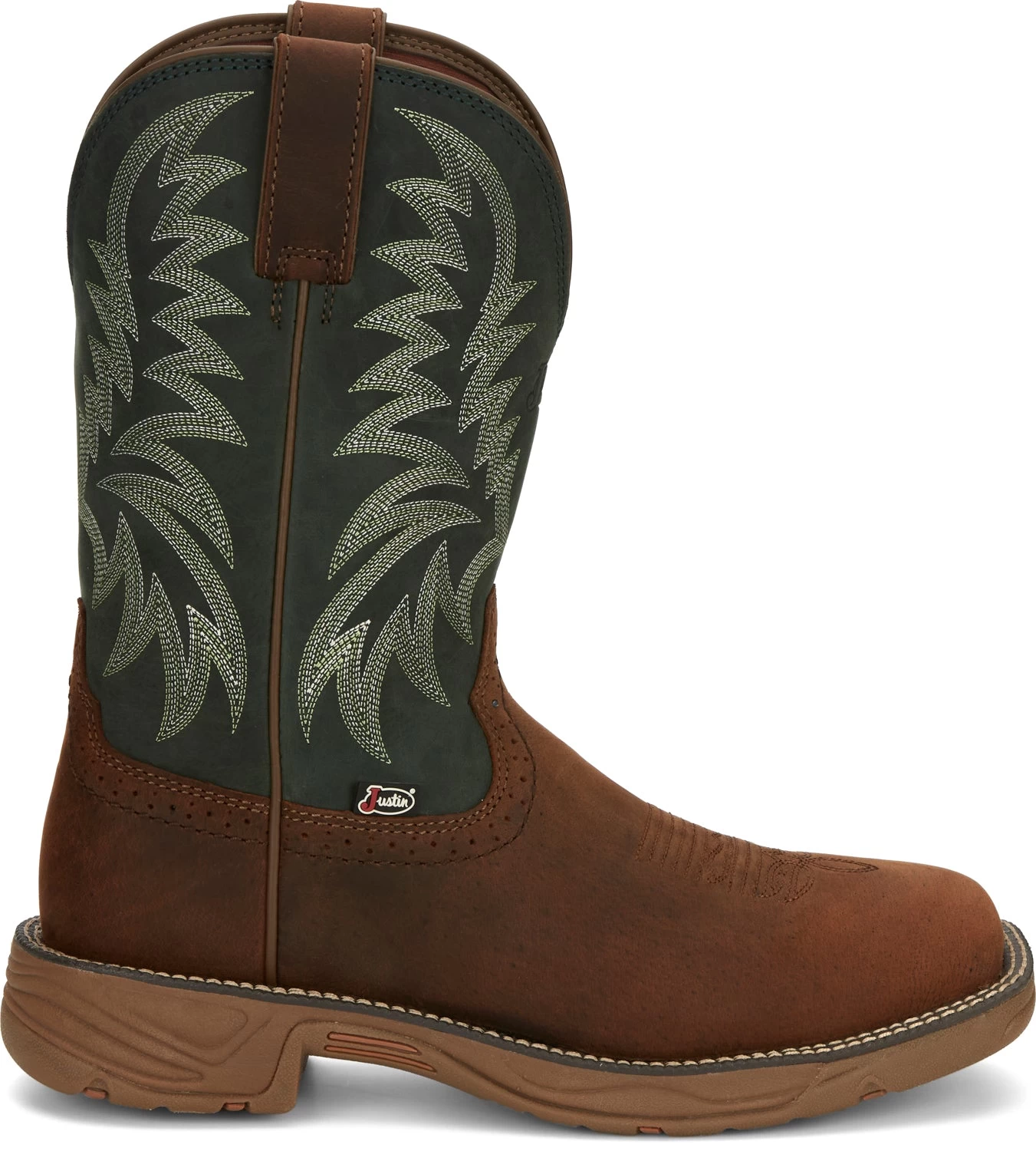 Justin Boots believe in continuing tradition and that is reflected in the durable, comfortable, authentic western and work boots they create. These men cowboy boots feature a wide square toe, , and a water buffalo leather. Get ready to work in comfort with these boots!