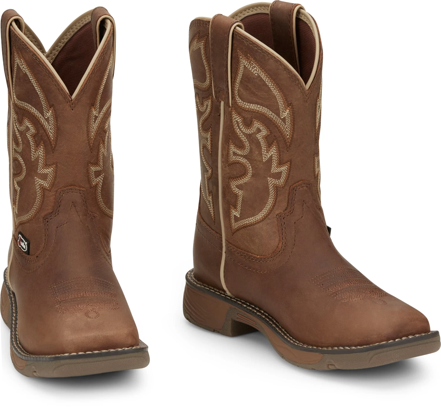 Justin Boots believe in continuing tradition and that is reflected in the durable, comfortable, authentic western and work boots they create. These boys cowboy boots feature a wide square toe, , and a cowhide leather. Dress your little cowpoke for their next western adventure!