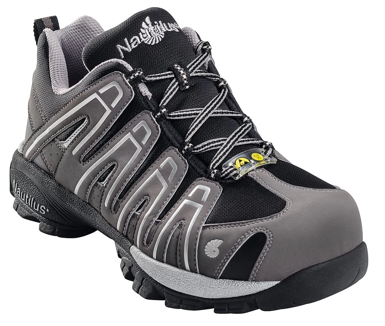 Nautilus Mens Composite Toe ESD Athletic W Grey/Black Faux Leather Shoes