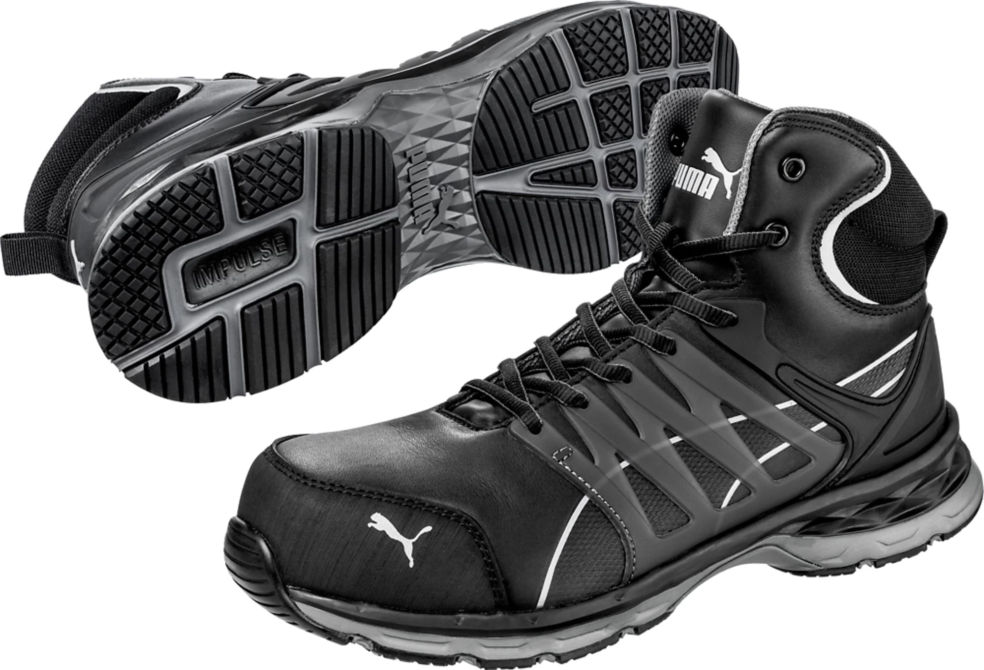 Fusing safety and lifestyle, Puma Safety footwear maintains a sporty look while staying comfortable during the work day. These smooth leather with tpu enforcements boots feature removable evercushion ba footbed, heat resistant, and fiberglass toe.