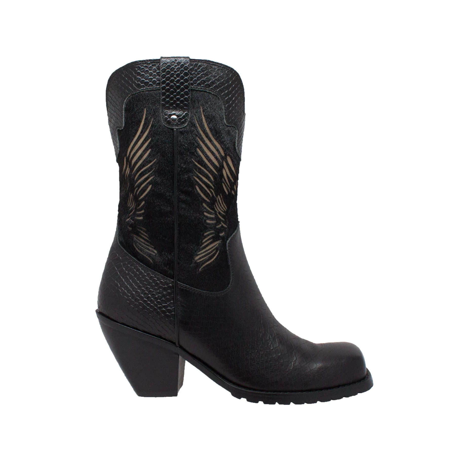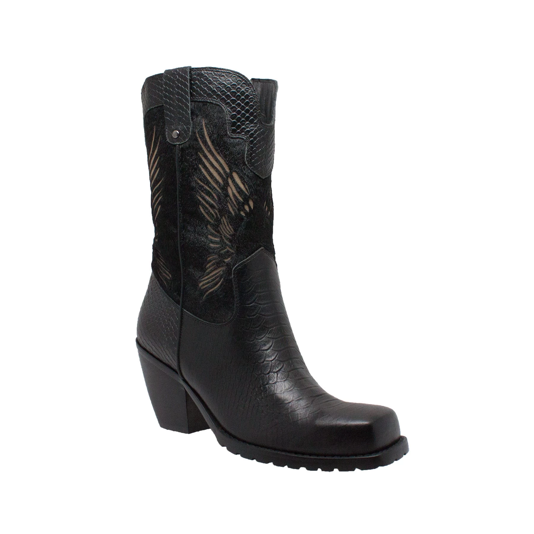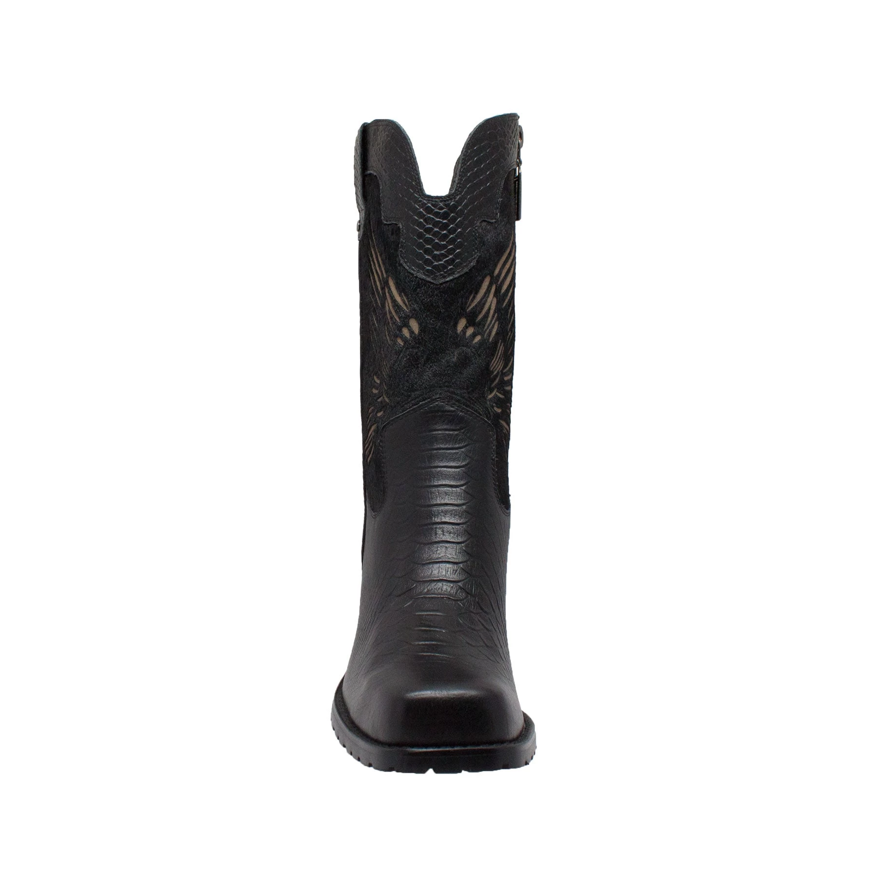 RideTecs Womens Black 11in Laser Eagle Boot Leather Motorcycle