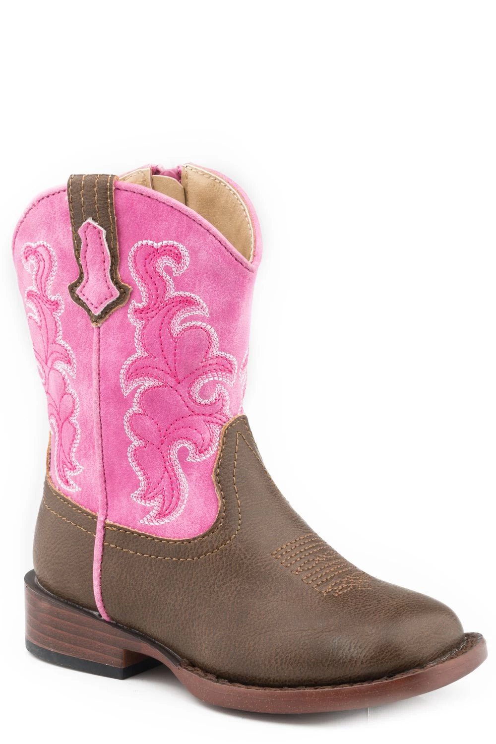 Roper Girls Toddlers Brown/Pink Faux Leather Blaze Cowboy Boots