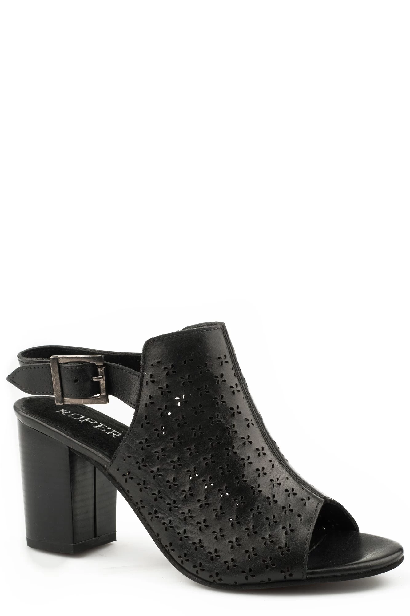 Roper Womens Black Leather Mika Geo 3In Heel Sandal Shoes