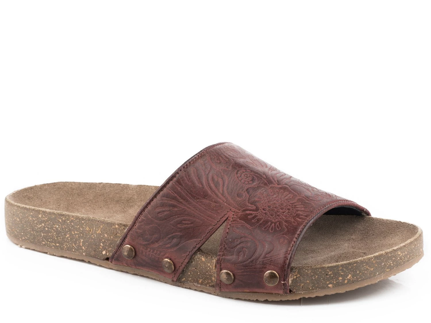 Roper Womens Brown Leather Destiny Slides Sandal Shoes