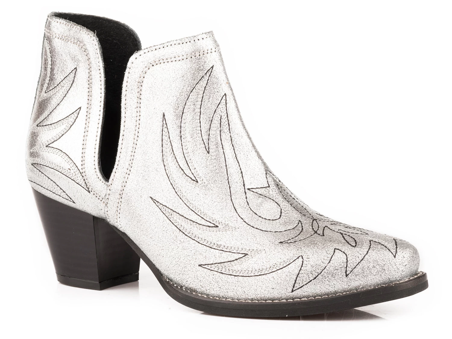 Roper Womens Silver Leather Rowdy Metallic Ankle Boots
