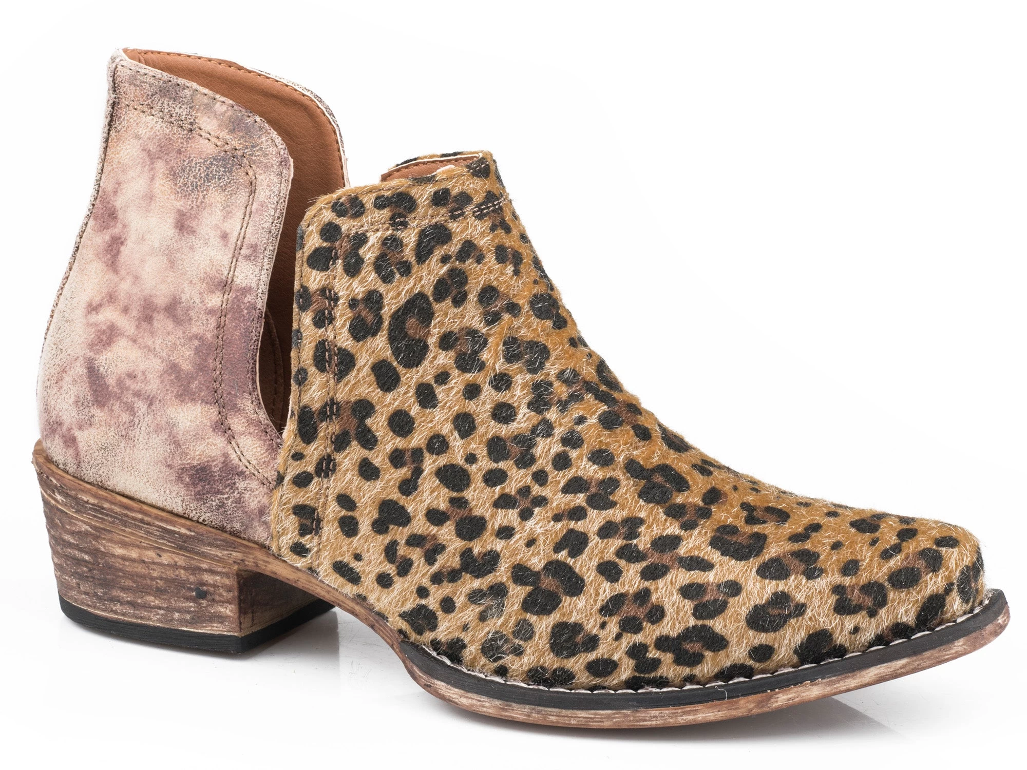 Roper Womens Tan Faux Leather Ava Leopard Hair Ankle Boots