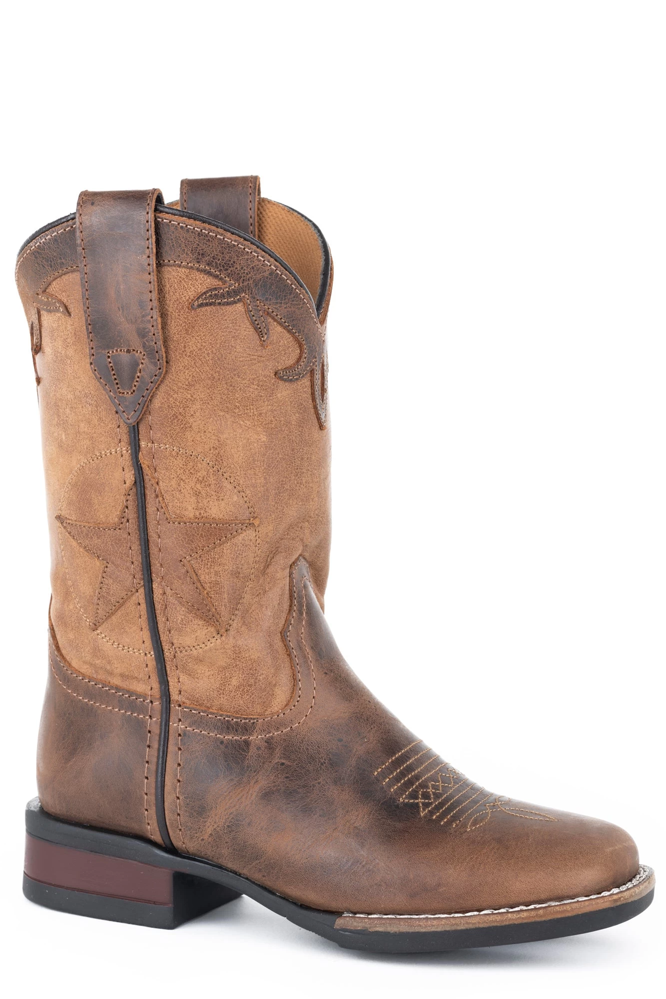 Roper Youth Boys Brown Leather Monterey Star Cowboy Boots