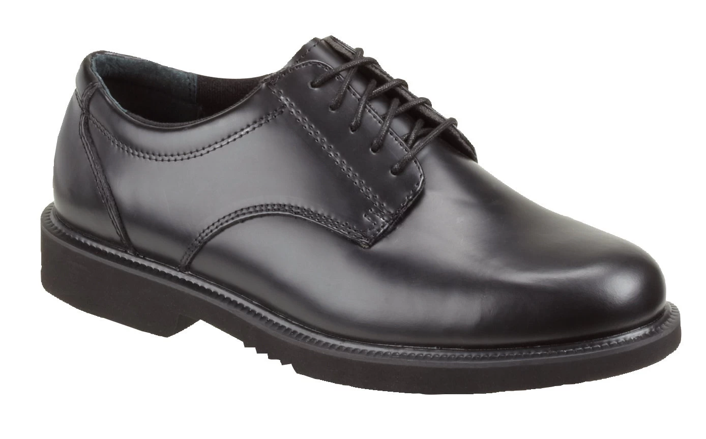 Thorogood has been providing quality work, uniform, and fire footwear since 1892. They are a leading manufacturer in engineering footwear safety and comfort. These high shine leather shoes feature a cement construction, comfort weave lining, and removable eva footbed.
