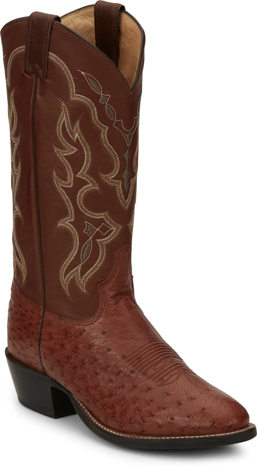 Tony Lama 13in R Toe Mens Cognac Smooth Quill Ostrich Cowboy Boots